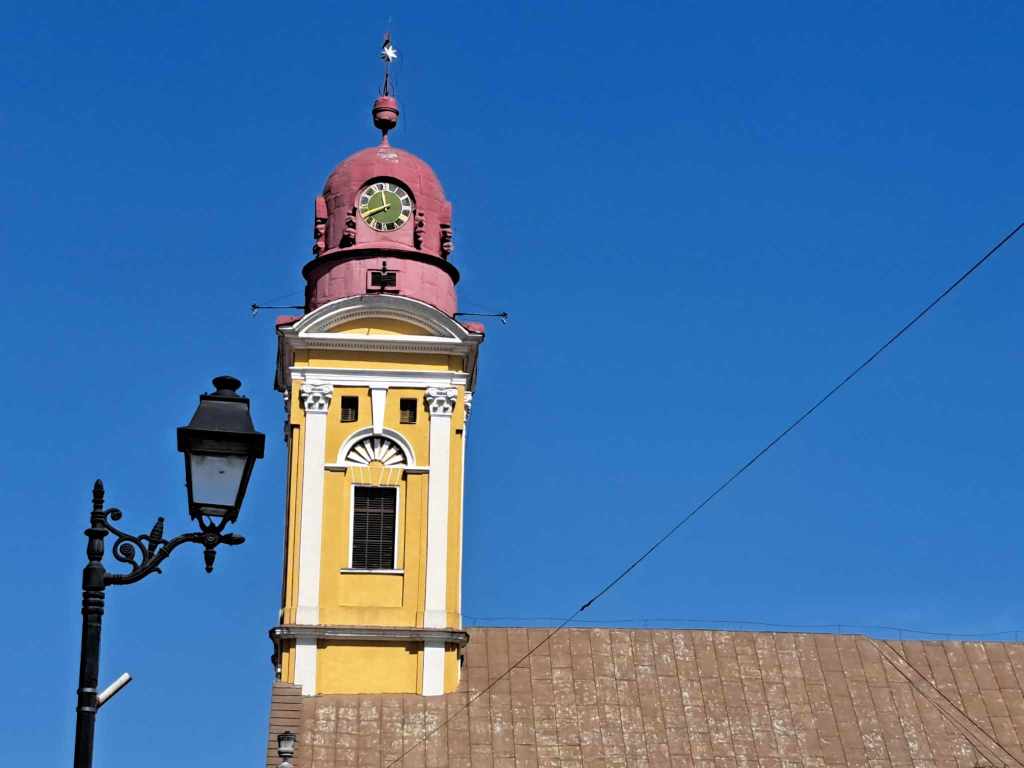 A főtértől néhány percnyi sétára találjuk a neoklasszicista stílusban épült református templomot, amely sokakat a debreceni református templomra emlékeztet. Nos, ez nem véletlen, hiszen ugyanaz a Péchy Mihály tervezte, mint az anyaországi Nagytemplomot.
