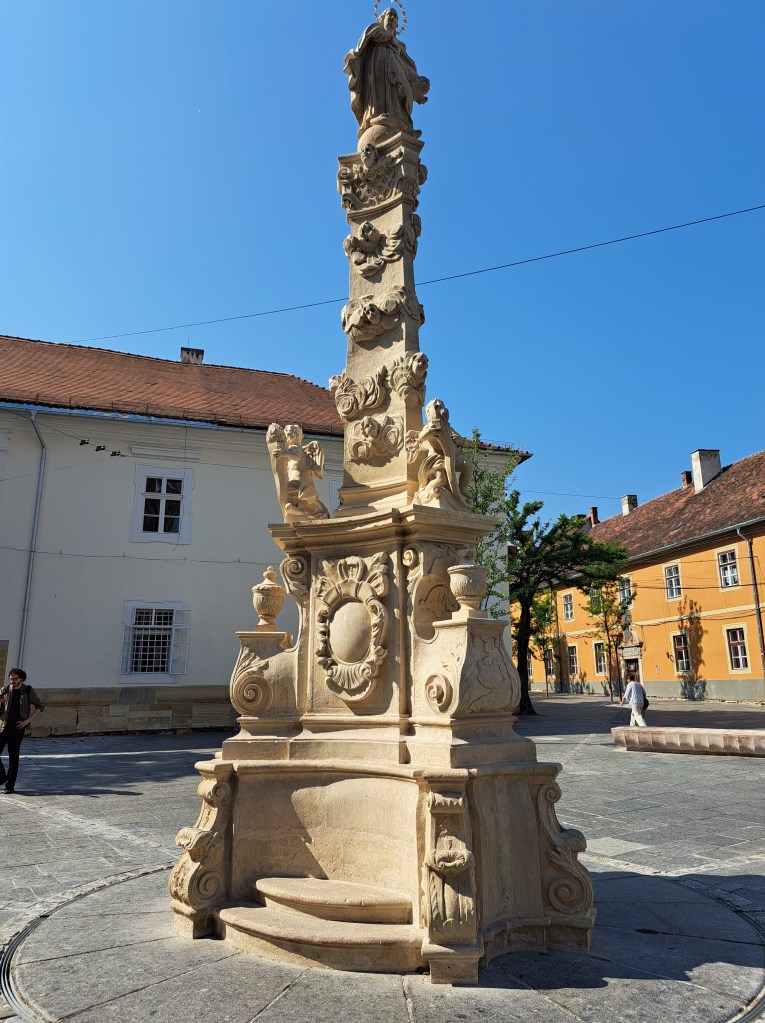 Az oszlop a második világháború végén megrongálódott, a háború utáni kommunista hatalomnak pedig egyenesen sértette a szemét. Igy 1959-ben részekre bontották és a Mátyás-szülőházhoz közeli ferences templomban raktározták el. Két évvel később a Mărăști negyedben, a Szentpéteri-templom kertjében állították fel, a járókelők számára alig lát(ogat)ható helyen. Itt az évtizedek alatt hatalmasra épült lakótelep barbárjai megrongálták, Mária fejét leütötték. A szobor innen került ki 2022-ben, amikor elkezdődött a felújítása, 2023 decemberében visszaállították az eredeti helyére, 2024. augusztus 15-én pedig felszentelték.
